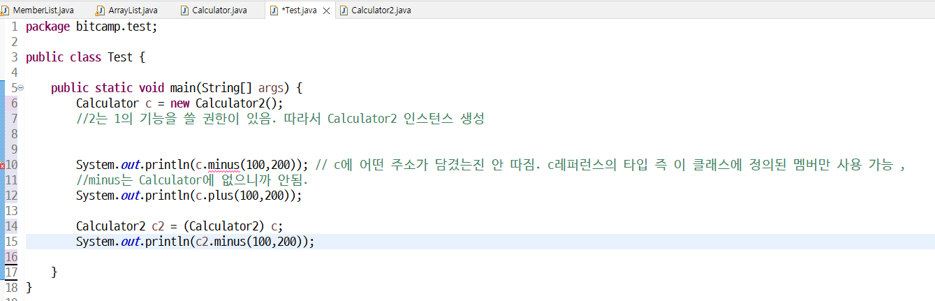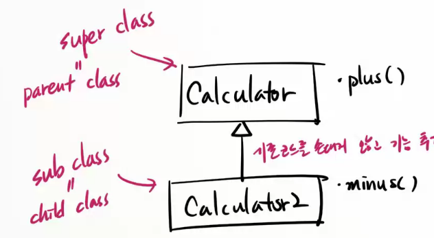 extends: Calculator2가 다른 클래스를 자신의 멤버처럼 사용할 수 있는 권한을 부여