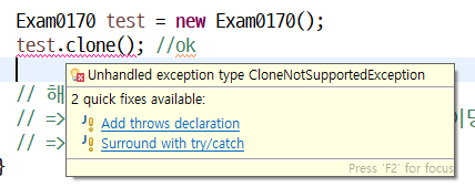 그래서 object의 서브 클래스가 clone 사용 가능