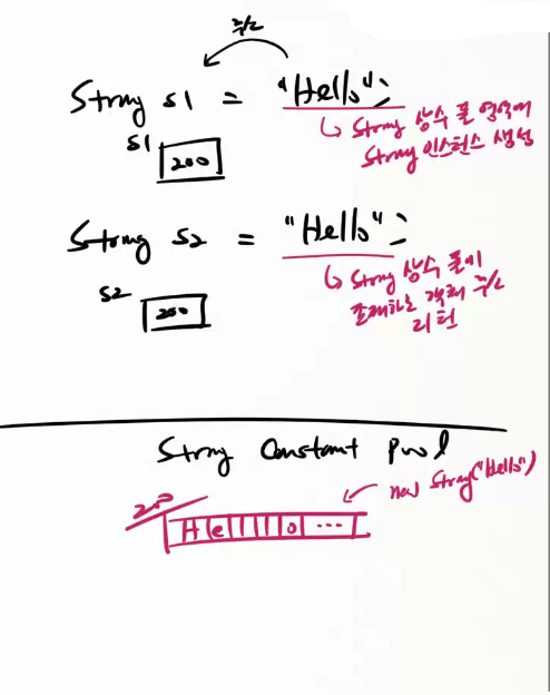 String s2 = "Hello"; // String Pool 영역에 String 인스턴스를 만든다. |