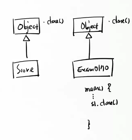 일반 상태에서는 비활성화에 protected으로 막혀있음 사용법을 정의한게 아니고 단순 활성화 비활성화를 표시하는 용도여서 그 안에 메서드 정의가 따로 없음. // => 이 인터페이스에는 메서드가 선언되어 있지 않다. // => 따라서 클래스는 따로 메서드를 구현할 필요가 없다. // => Cloneable을 구현하는 이유는 // JVM에게 이 클래스의 인스턴스를 복제할 수 있음을 표시하기 위함이다. // 이 표시가 안된 클래스는 JVM이 인스턴스를 복제해 주지 않는다. 즉 clone()을 호출할 수 없다. static class Score implements Cloneable { |