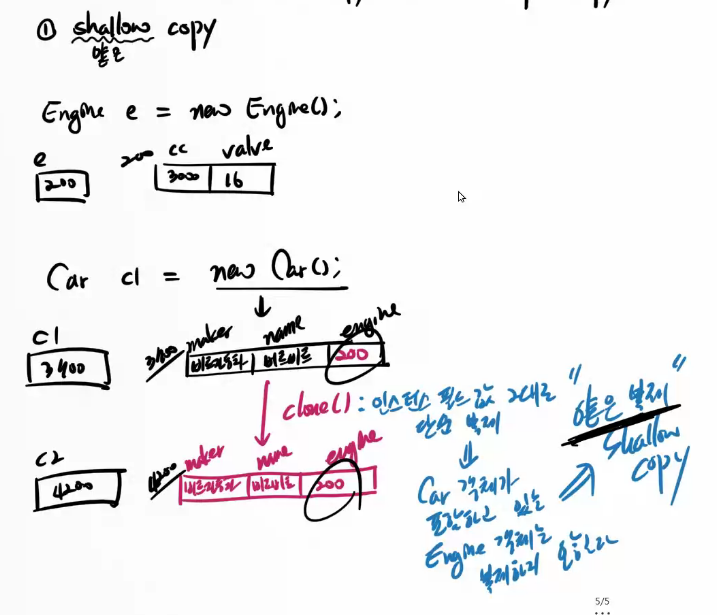clone() : shallow copy(얕은 복제) vs deep copy(깊은 복제)