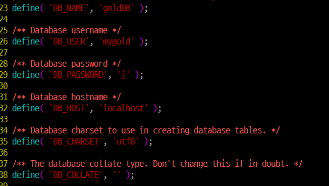 vi wp-config.php // id에 맞게 수정