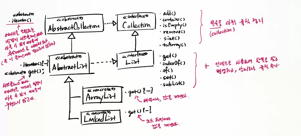 | List를 구현하고 AbstractCollection 를 상속 받음 <<abstract>> AbstractList |