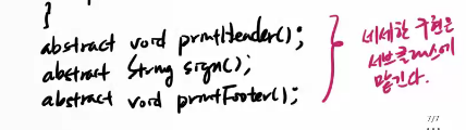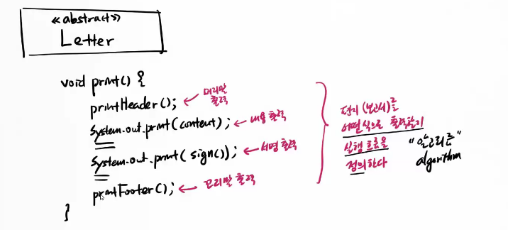 => 보고서 출력에 대한 틀(template)만 잡고 실제 출력은 서브클래스에서 결정한다.