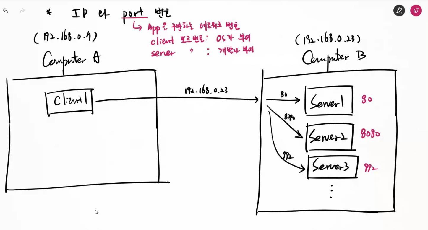 0~1023: well-known port (쓰지 말기) 암묵적?으로 약속된 쓰임새가 있는 포트 번호들임