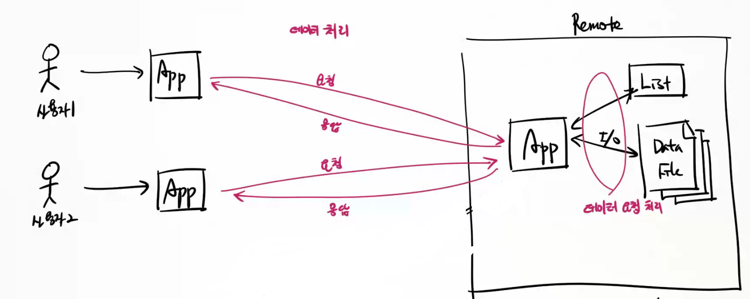 원격 컴퓨터의 App이 데이터 등록/조회/변경/삭제를 관리 .