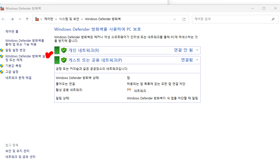 방화벽끄기