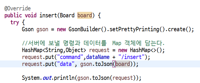 Board Dao가 Server에 Json 문자열 전송
