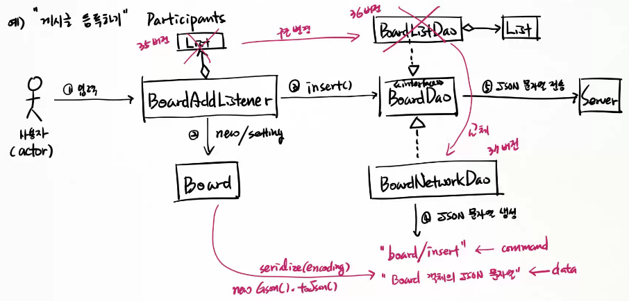 (BoardDao를 상속 받은) BoardNetworkDao가 Server에 JSON 문자열 생성하여 전송.