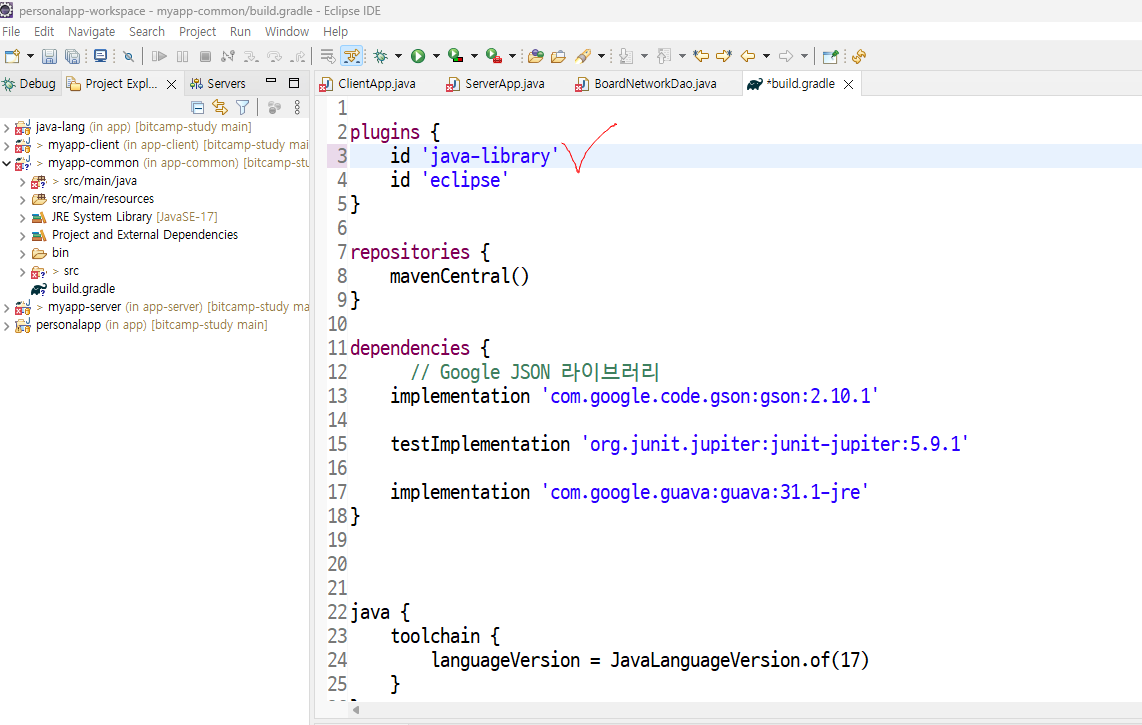 공유하고 싶은 클래스를 서브 프로젝트로 만들어 공유하기 !