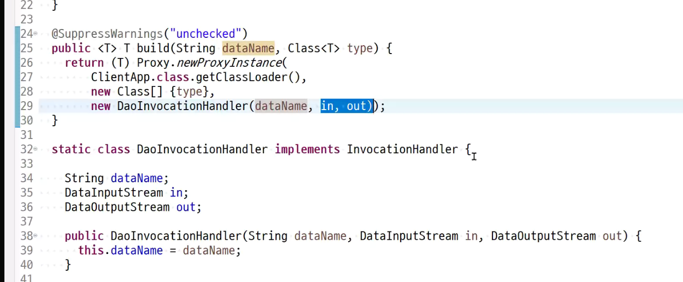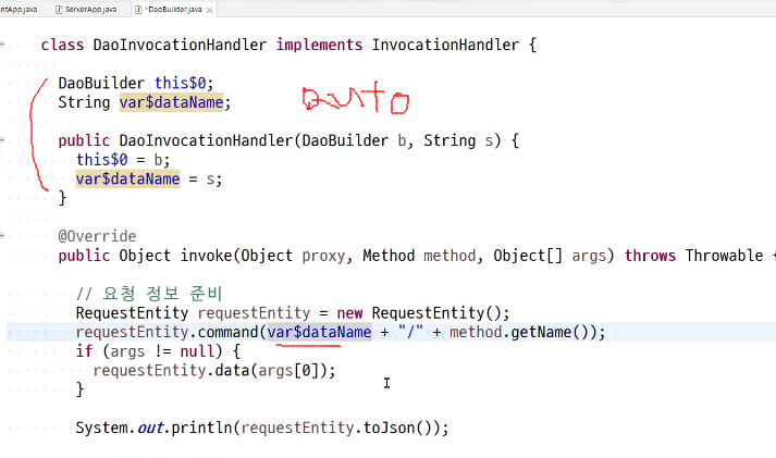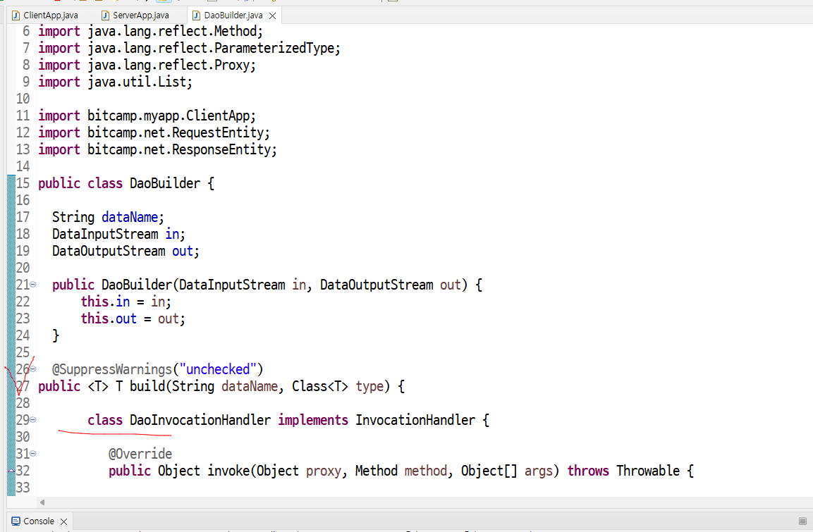클라이언트 bitcamp에 dao 패키지, DaoInvocationHandler (InvocationHandler 구현한) 클래스 만들기