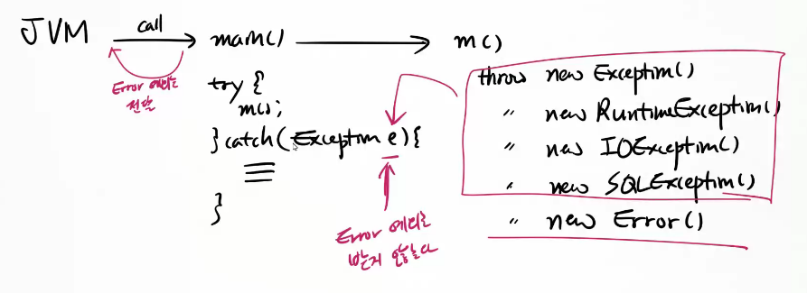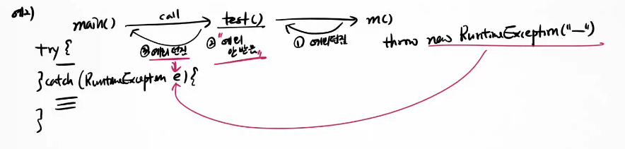 } catch(Throwable e) { //m2가 던지는 예외 타입레퍼런스, catch에는 object 못옴. Throwable만 올수있음