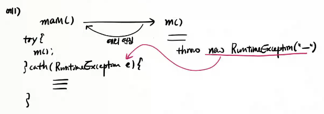 m1() -call-> m2() {...try { m3() } catch() { } }// m3() throws 예외 {,,,}