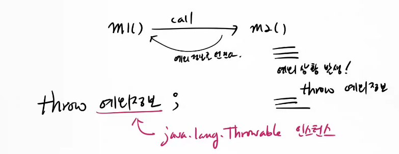 ■ throw - 예외 상황을 맞이했을 때 예외 정보를 호출자에게 던지는 문법