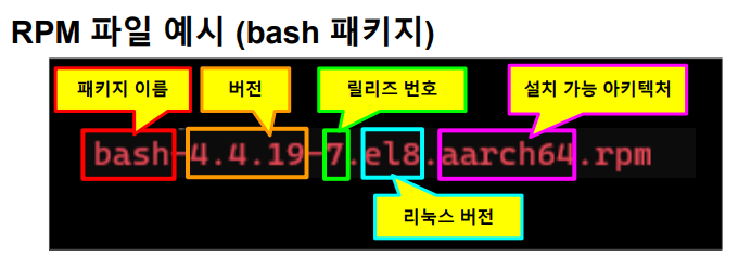| rpm -i <패키지 파일.rpm> | 패키지 설치 (install) |