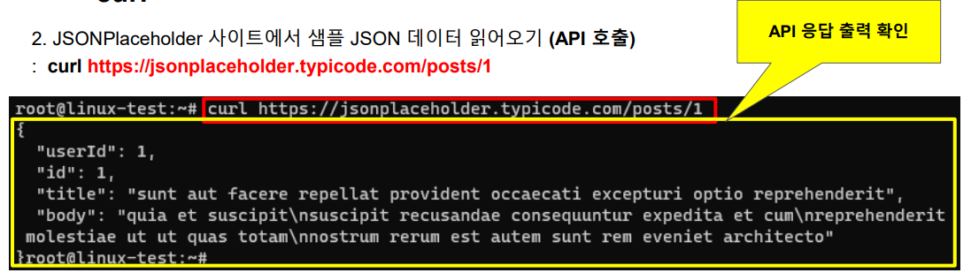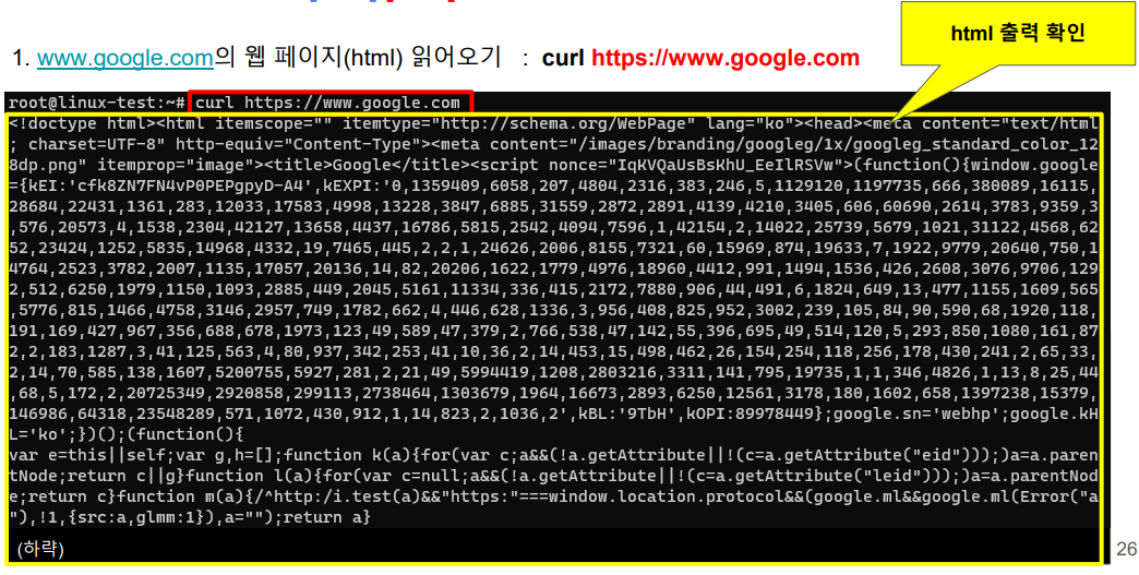 | curl 기능: 주어진 URL로 HTTP 등의 인터넷 통신 수행 형식: curl [옵션] [URL] |