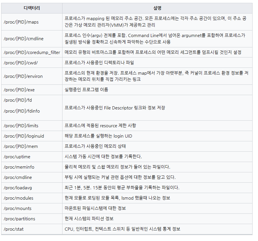 /proc에 현재 실행중인 PID와 같은 이름의 폴더들이 생성됨