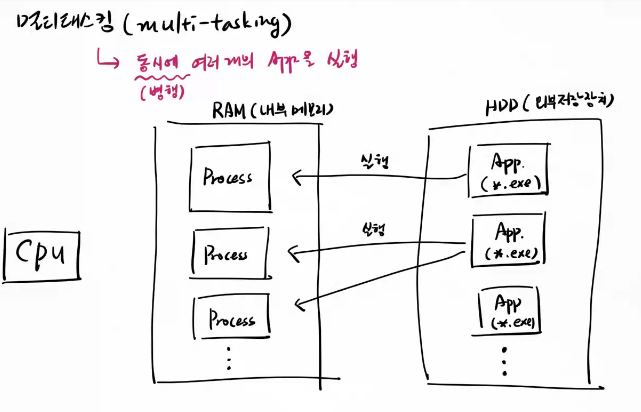 => 동시에(concurrent 병행) 여러개의 app을 실행