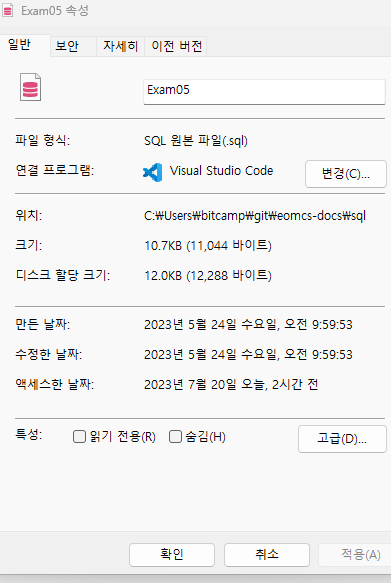 source C:/Users/bitcamp/git/eomcs-docs/sql/Exam05.sql