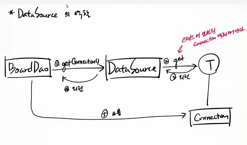 그래서,,, Datasource: 명령어를 실행하는 시점에 스레드가 갖고 있는 스레들 꺼내서 dao에 전해줌
