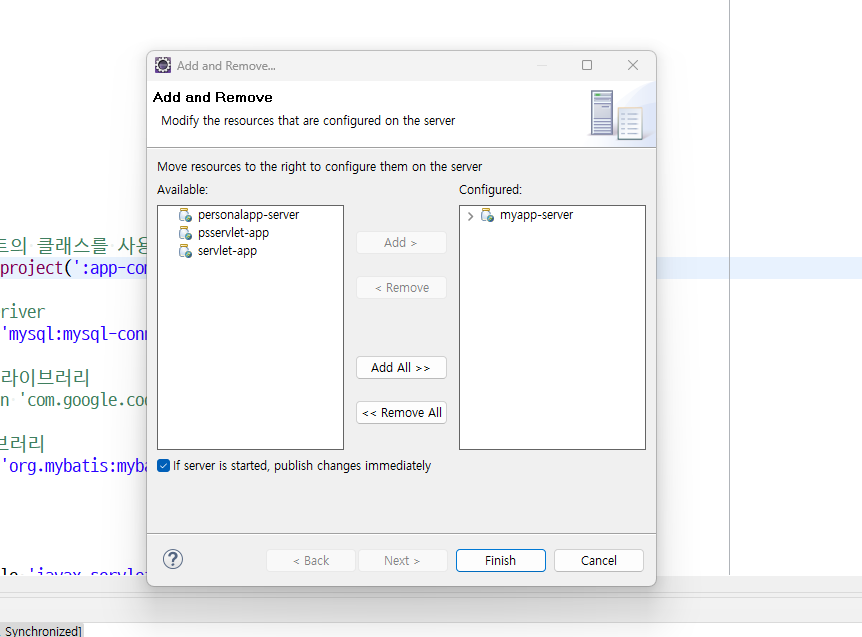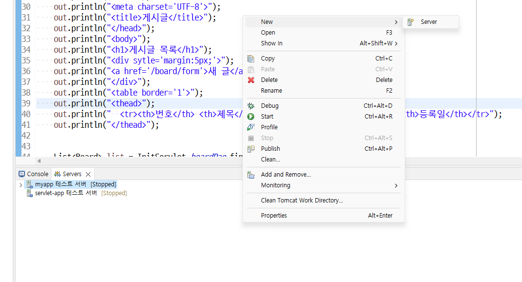 이클립스 서버에서 배포폴더빼고 폴더가서 빠졌는지 확인 후 다시 배포하기.