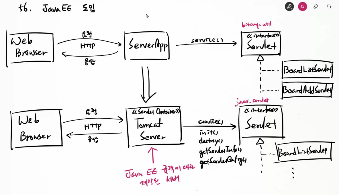 처음에 Servlet : 특정 프로토콜에 제한되지 않는 범용 기술 (서버와 엡 연결)