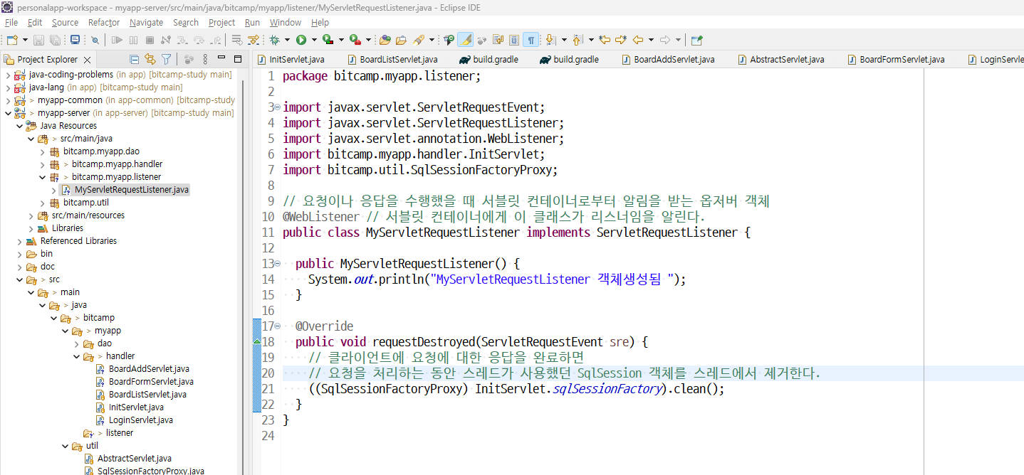 => 객체 직렬화를 활용하여 처리 => GenericServlet 클래스는 이런 상황을 고려하여 java.io.Serializible 인터페이스를 구현하였다,,!!! => 그래서 이 클래스를 상속 받은 서브 클래스로 serialVersionUID 를 설정해야한다.