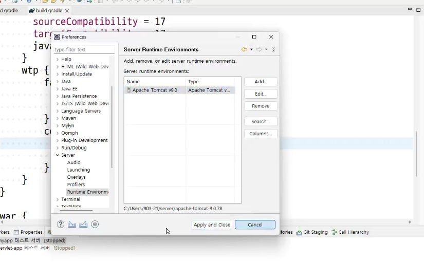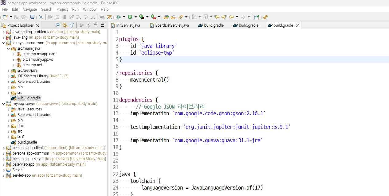 기존 워크스페이스 다른 이름으로 바꿔서 저장 후 새로운 워크스페이스만들어서 이클립스 실행