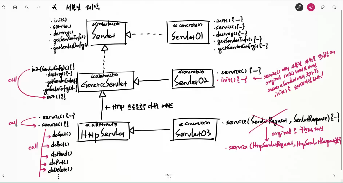 // => 따라서 이 클래스를 상속 받는 서브 클래스는 service() 만 구현하면 된다.