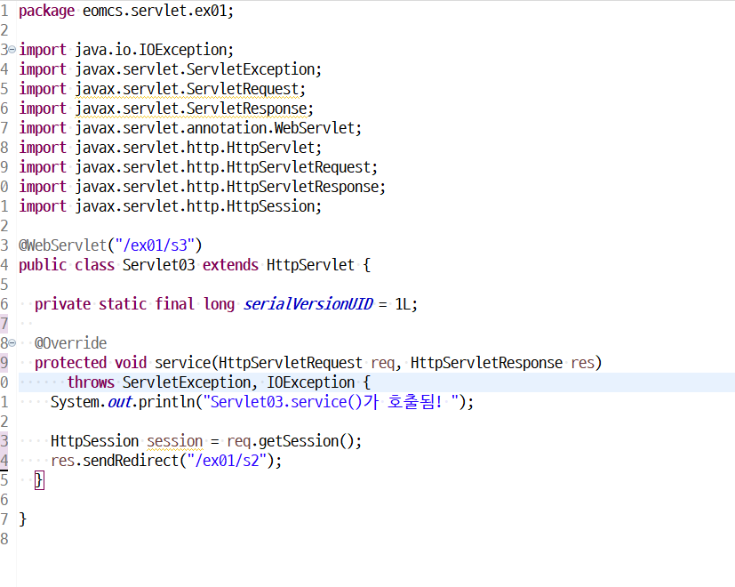 //@WebServlet(urlPatterns={"/ex01/s2","/ex01/ss2","/ex01/sss2"}) 이름 여러개