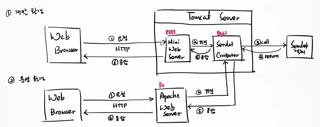 톰캣서버에는 내부적으로 엔진이 두 개 있음(mini web server & Servlet Container)