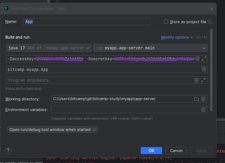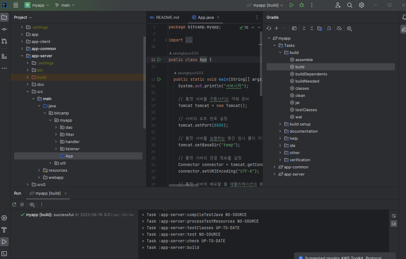app.java 수정 ,,,, 기존 bin/main을 classes 로 경로 수정