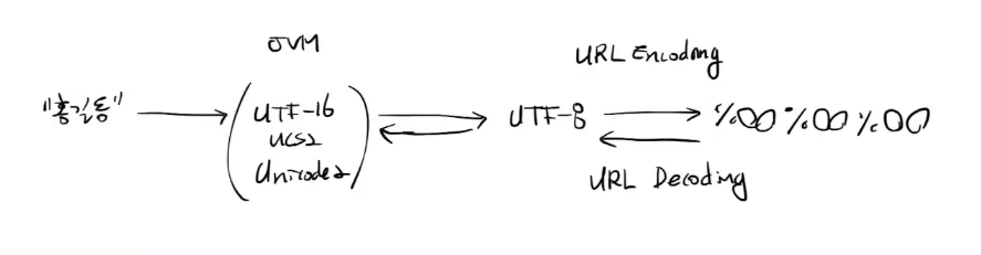 // 한글을 utf-8로 바꾸고 %로 또 바꿈