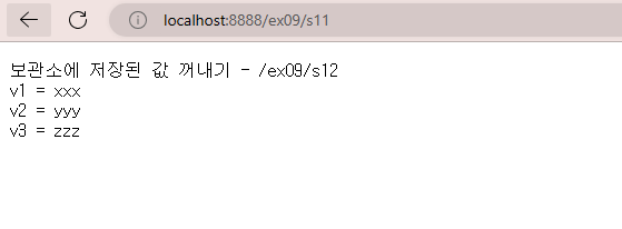 out.println("보관소에 저장된 값 꺼내기 - /ex09/s2");
