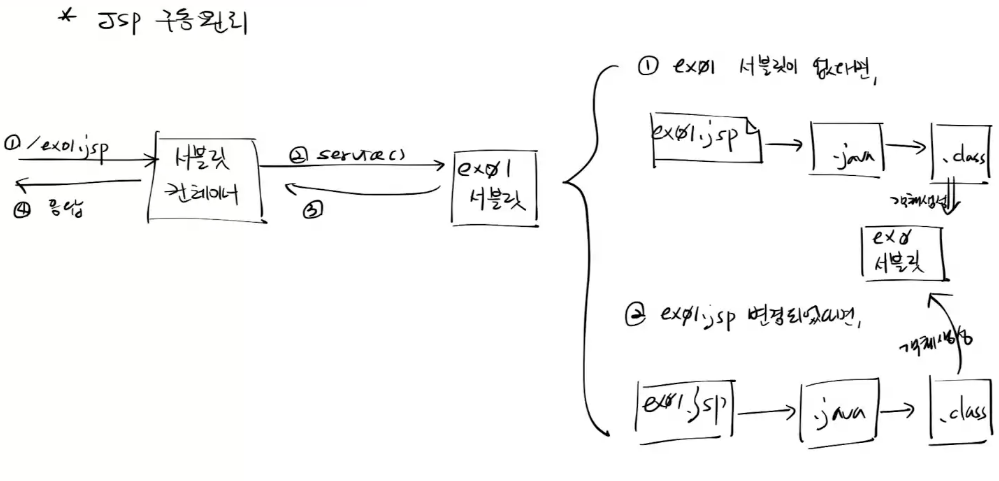 - 위에서 설명한대로 JSP 구동 원리에 따라 동작된다.