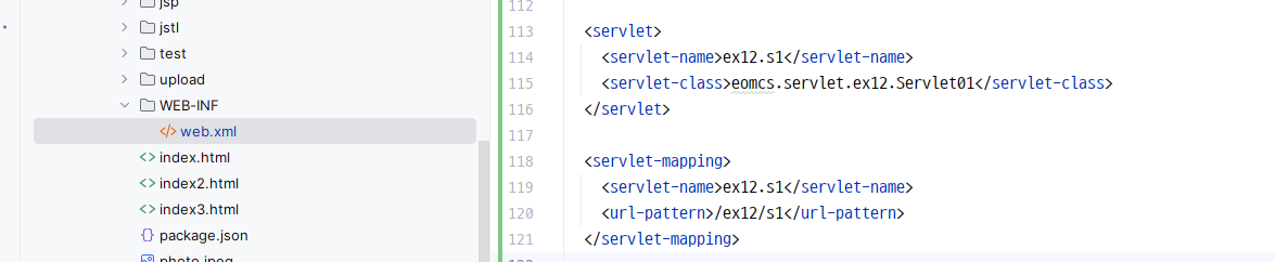 // 서블릿 배치: 1) web.xml 에 배치 정보를 등록