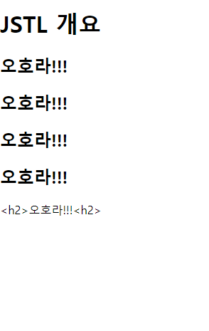 <c:out value="<h2>오호라!!!<h2>"/> //JSTL