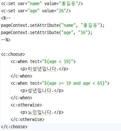 - JSP 페이지에서 JSTL 라이브러리의 모듈 사용하기