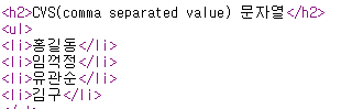| <h2>CVS 문자열</h2> <% pageContext.setAttribute("names1", "홍길동,임꺽정,유관순,김구"); <ul>