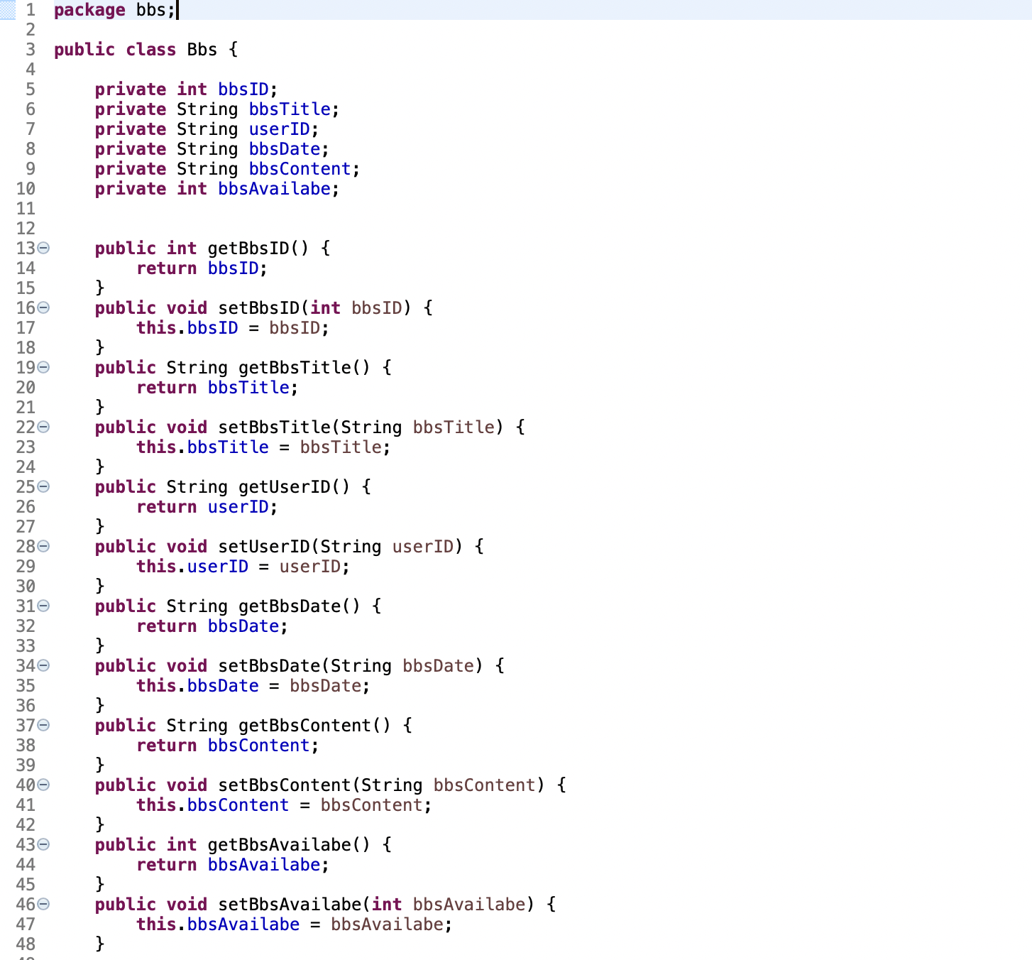 게시판 db 구축 후 javabeans 클래스 생성