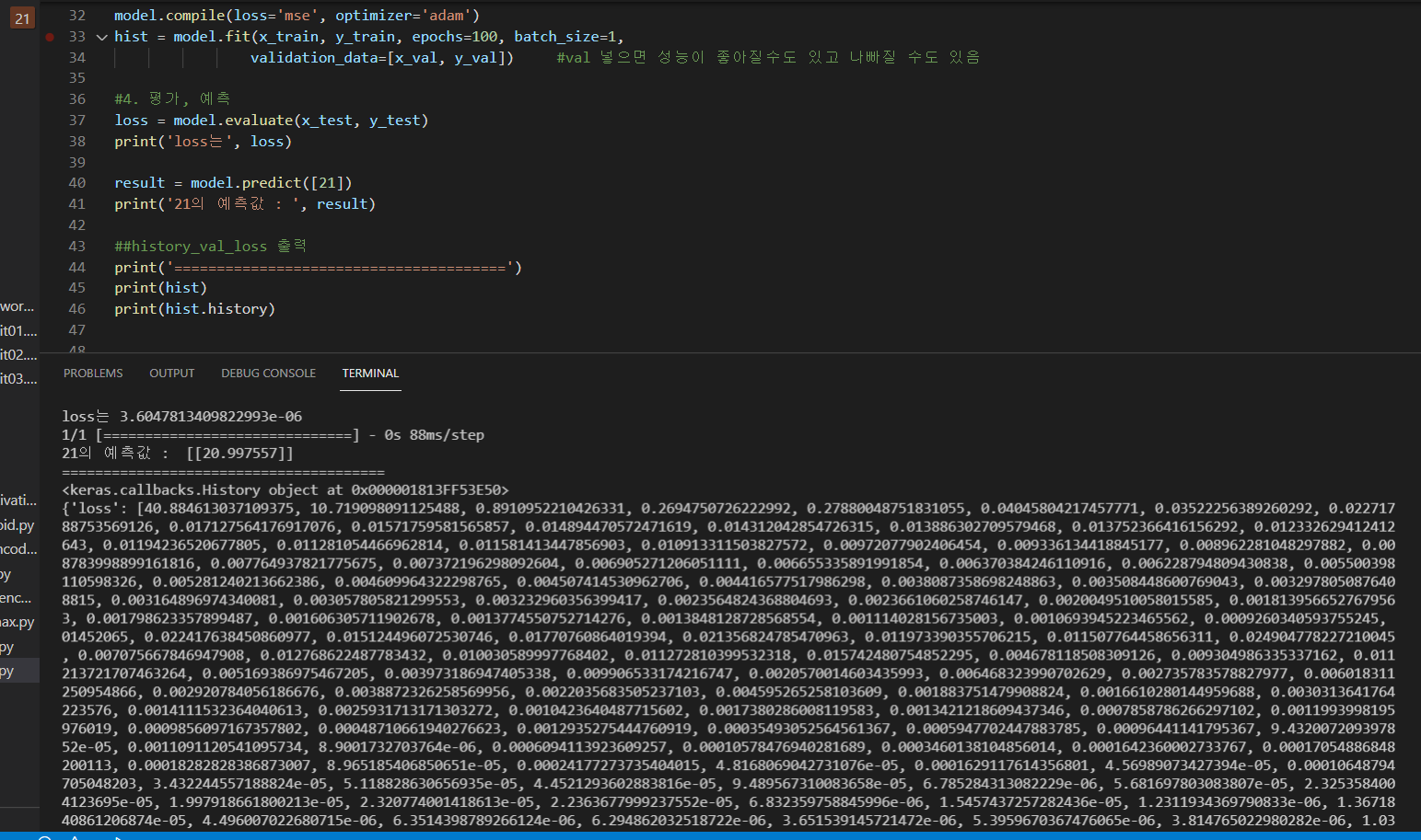 validation_data=[x_val, y_val]) #val 넣으면 성능이 좋아질수도 있고 나빠질 수도 있음