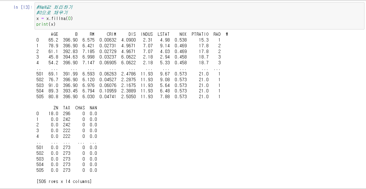판다스로 파일 끌고옴 금지된 보스턴 import numpy as np import pandas as pd#pandas 파일 가져오는 거 from keras.models import Sequential from keras.layers import Dense from sklearn.model_selection import train_test_split from sklearn.met