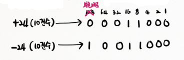 | +24 => 00011000 | 양수값은 그대로 2진수로 변경 |