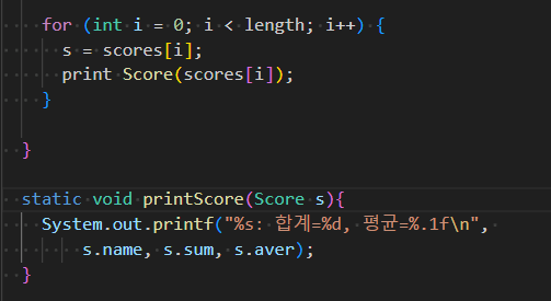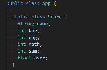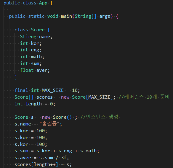 scores[length++] = new Score("홍길동", 100, 100, 100);