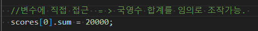 //scores[0].kor = 7000; 직접 접근 불가