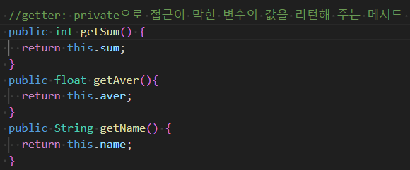 //getter: private으로 접근이 막힌 변수의 값을 리턴해 주는 메서드