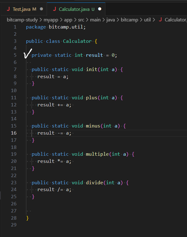 에서 private int result = 0;
